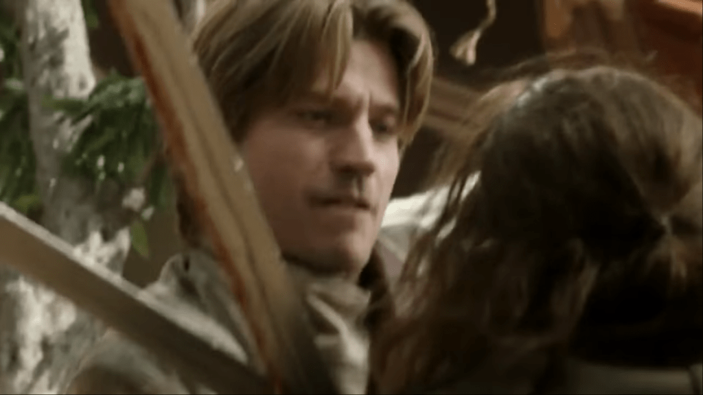 Este es uno de los combates más icónicos de la primera temporada. En la escena hay en primer lugar un enfrentamiento entre lanzas y espadas, pero voy a centrarme en el intercambio que hay entre Ned y Jaime.