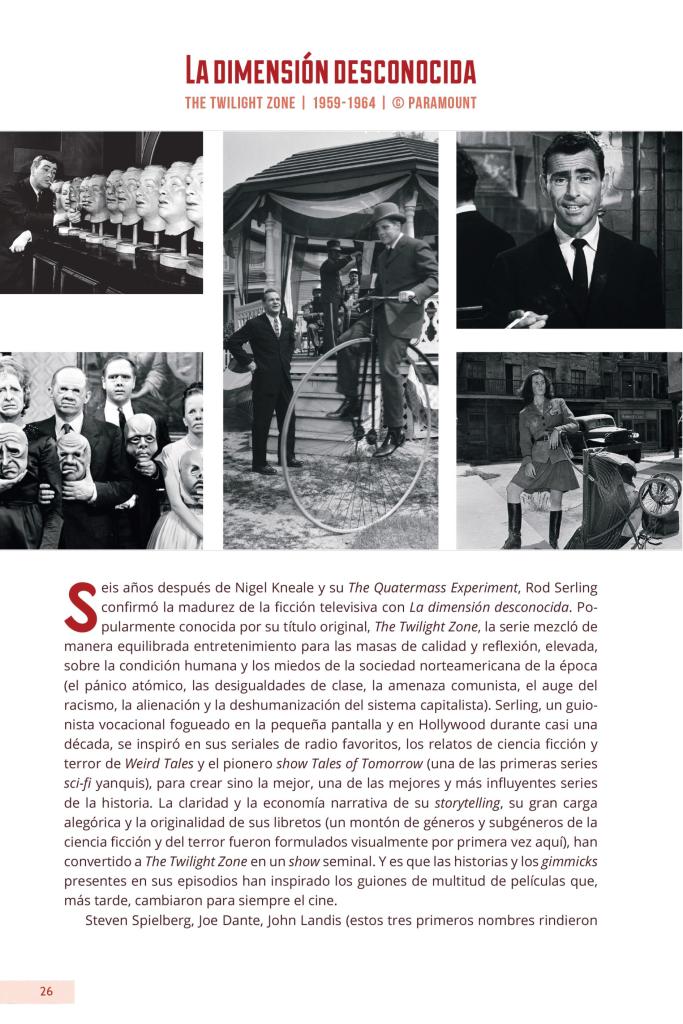 Aunque me circunscribo aquí al ámbito más estrictamente personal, he sentido que el libro era una conversación con mi persona. Creo que al lector inevitablemente le llegará ese genuino amor y pasión que emanan los autores por las obras de género. Me siento uno más en medio de esta vorágine de referencias y reflexiones; siento que soy un alumno en una master class conjunta donde unos vehementes profesores tienen a bien ofrecerme tantas herramientas como son capaces en el menor espacio posible. Es un volumen donde descubrir y redescubrir, donde la lectura se puede enfocar de distintas formas: como se dice en la propia Introducción, puede ser desde un volumen de consulta ocasional a una bonita edición que hojear o un libro que leer de cabo a rabo. De esta última forma se intuye cierta linealidad (sorprendente en una obra escrita a ocho manos) desde la que explorar la evolución de las series del género a lo largo de los decenios, el cómo se teje un sinfín de influencias cruzadas y respuestas a fenómenos que ebullen de las sociedades de la época. Funciona, en esencia, se enfoque de una forma u otra. En mi caso, tras esta primera lectura de principio a fin, sin duda volveré a caer en entradas concretas en un futuro cercano para explorar esas series que desconocía y por las que se me ha despertado el interés. Sí que es cierto que la exploración del género que hace el libro no puede ser todo lo profunda o pedagógica que sería si se tratase de un ensayo de estructura más clásica; no obstante, nadie ha dicho que la educación sea lineal, ni que no se pueda aprender y disfrutar de los estímulos que nos llegan de las distintas direcciones.