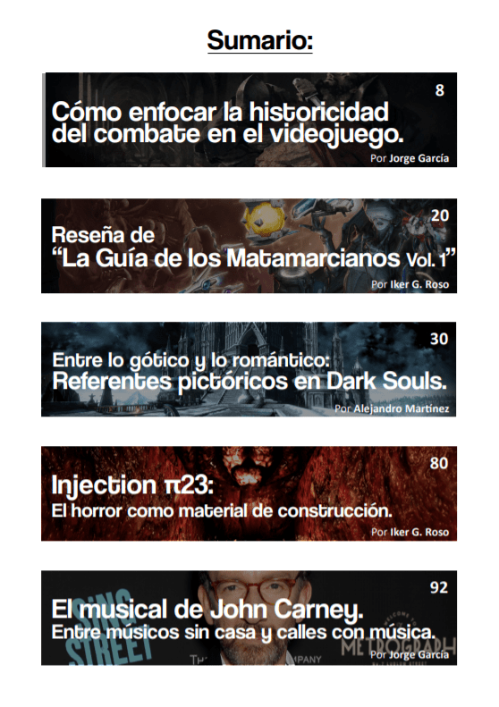 Como sabréis, este mes de Julio no ha estado tan cargado de contenido como de costumbre. En parte, porque el verano hace estragos; en parte, porque el Patreon está en horas bajas. No obstante, sí que hemos sacado unos cuántos textos, algunos más o menos extensos, y así poder traeros la revista-recopilatorio de este mes. Hemos tenido desde cómo los distintos estilos pictóricos han influido a Dark Souks hasta un repaso del cine musical de John Carney o reseña de un libro de matamarcianos. Ya sabéis que en la variedad está el gusto.