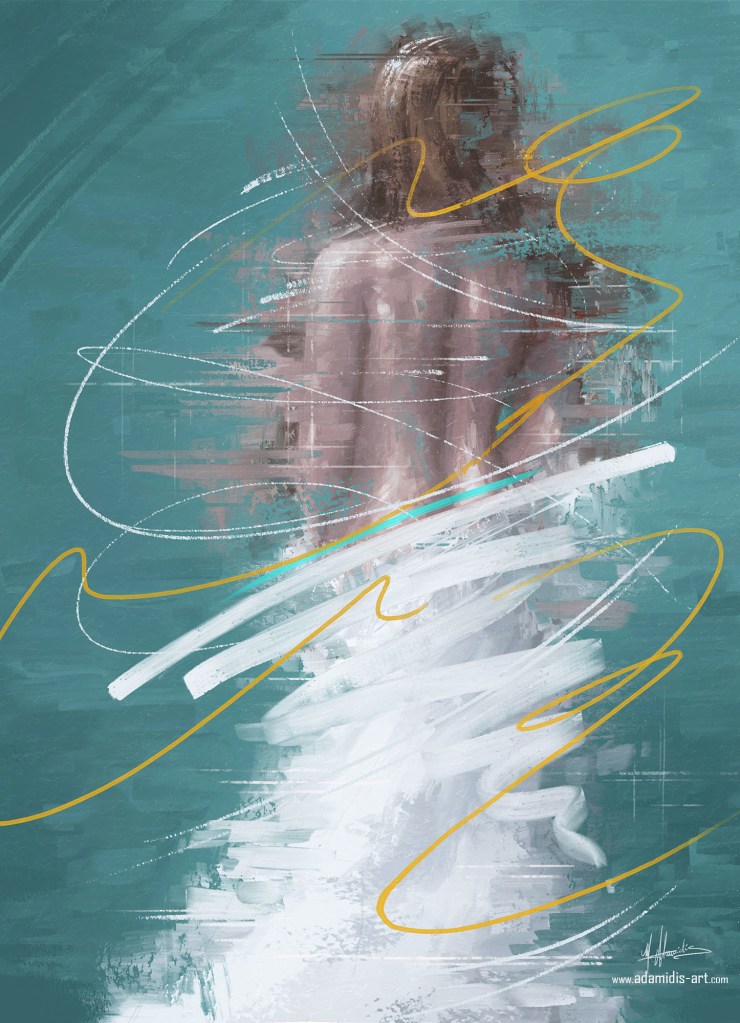 Con un movimiento fluido, el ente (aparentemente femenino) se volvió a asomar a la pantalla. Las líneas de código la abrazaron, devolviéndola a su lugar. La línea 132221114215 fue la última línea de código que se escribió, cuando el ente ya había entrado del todo. Entonces, con la misma vida que lo había escrito, el código se borró, signo a signo, rápidamente.