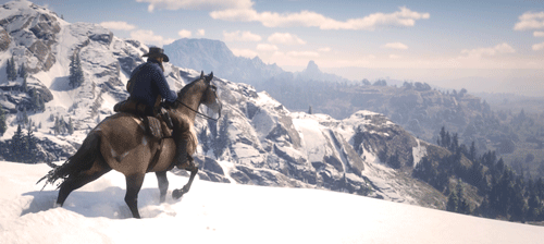 El problema con los mundos abiertos y el viaje del héroe es que estos momentos que el protagonista enfrenta no se convierten en etapas puntuales que le ayudan a desarrollarse, sino que dentro del gameplay son lugares recurrentes. La cinemática de inicio de Red Dead Redemption 2 muestra a la caravana de forajidos buscando refugio en mitad de una ventisca. Sus pasos son pesados sobre la nieve y el avance es lento y complicado, y Dutch Van der Linde comenta durante la travesía: “Si no paramos pronto moriremos todos”. Sin embargo, una vez que el jugador toma el control durante la partida puede replicar estas situaciones en solitario, cuyas consecuencias no parecen ser nunca las mismas que las mostradas en el vídeo introductorio ni las esperables por el sentido común. Se produce así un choque entre narrativa y jugabilidad: el pesado viaje en caravana que pone en riesgo la vida de los protagonistas es, una vez en manos del jugador en solitario, un simple trámite que se puede repetir una y otra vez a voluntad cada vez que se necesite retroceder hacia un punto anterior. El equivalente a que Frodo después de atravesar Moria volviese a La Comarca porque se le ha olvidado el anillo y luego al salir de los túneles cercanos a la torre de Cirith Ungol volviese hasta Rivendel a por más pan élfico.