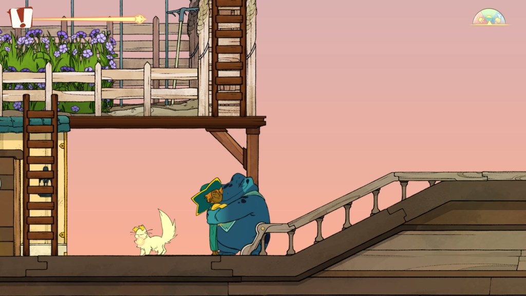 Aunque la mayoría de gente, incluso portuguesa, asuma la saudade como nostalgia o morriña, la verdad es que nuestro Señor Pessoa decía que era una palabra intraducible, pues la saudade se trata de un dolor similar al de la nostalgia, pero con la diferencia de que el dolor que sientes es por algo que no ha sucedido. La saudade de una infancia que nunca hubo, la saudade de un amor que nunca estuvo, la saudade de una muerte que nunca sucedió… La saudade es sentir nostalgia de un pasado imaginado. Y esa es la magia de Spiritfarer. Todos los animales están relacionados con nosotros de alguna forma, pero lo que en un principio implica una relación narrativa con la protagonista —una es la mejor amiga, otra es una conocida, otra es una mentora…— se convierte rápidamente en una relación personal de los animales con nosotros como jugadores. Ya no es que estemos sintiendo el dolor que siente la protagonista al abrazar a una señora Erizo, sino que es el dolor que siente el jugador al abrazar a una señora Erizo. Y es que realmente ese dolor no es de algo que me haya sucedido, pues de momento ninguna de las líneas narrativas que proponen los personajes la he sufrido en carne propia o cercana, pero está todo tan… tan… bien llevado, tan tranquilo y despacio, que el dolor del otro lo siento yo, y cuando una señora Erizo me pide que le acompañe al barco siento un dolor por algo que nunca he vivido, y que aún así soy capaz de sentir. Esa saudade, esa tristeza y ese dolor que nunca has vivido, pero que de alguna forma eres capaz de sentir sin saber muy bien cómo, eso es Spiritfarer.