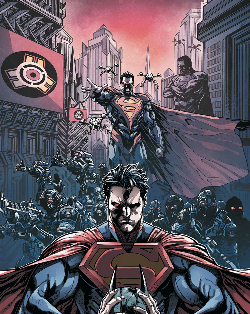 A raíz de este momento se suceden una serie de momentos que desembocan en que Superman se alce como dictador de un nuevo mundo y líder del Régimen donde algunos héroes y villanos se han unido para gobernar la Tierra y combatiendo e incluso asesinando a aquellos héroes que se oponen o desafían al kriptoniano.