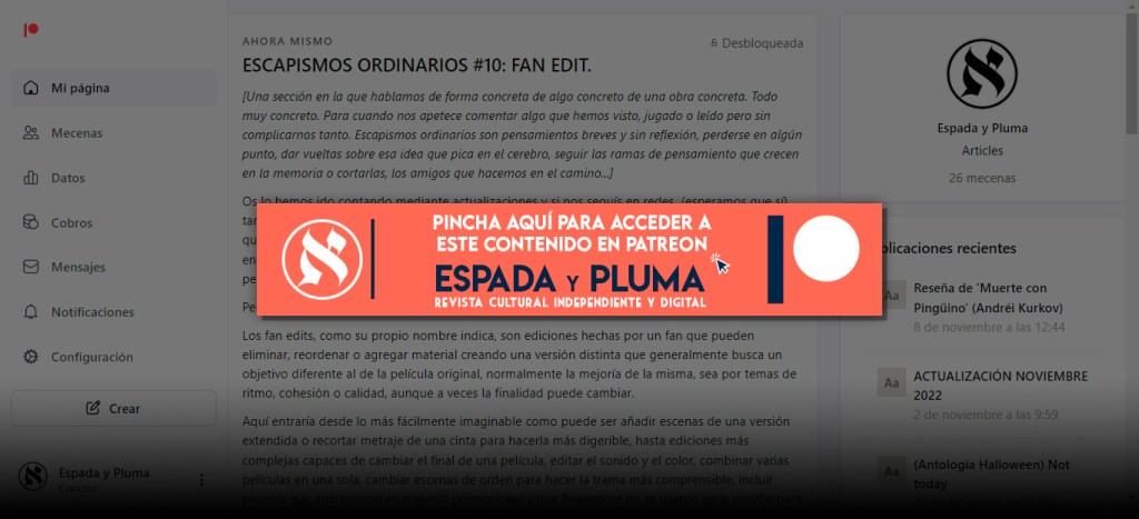 Os lo hemos ido contando mediante actualizaciones y si nos seguís en redes (esperamos que sí) también lo habréis visto por allí: el monográfico ya casi está, aún así se ha comido bastante tiempo que ha habido que recortar de escribir algo más «serio» (ya sabéis, con más serio me refiero a las entradas que se publican en la web y que llevan más trabajo de documentación, reflexión, etc) pero me ha dejado algo de tiempo para caer en un nuevo pozo: los fan edits. […]