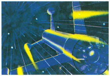 Portada de caja de uno de los primeros modelos de la nave, dibujada por el legendario Shigeru Komatsuzaki.
