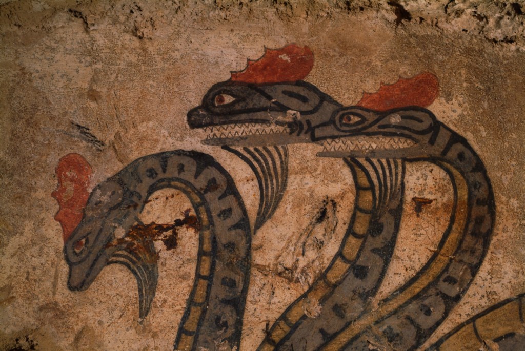 Asomaron cinco cabezas desde la cueva, seguidas de cuatro vigorosas piernas y una serpenteante cola. Era la Hidra de Unlerna, desperezándose tras una dura noche en la que parecía haber tenido pesadillas, o al menos alguna de sus cabezas. Nos referiremos a éstas como PRIMERA, SEGUNDA y así sucesivamente hasta el número que sea necesario.