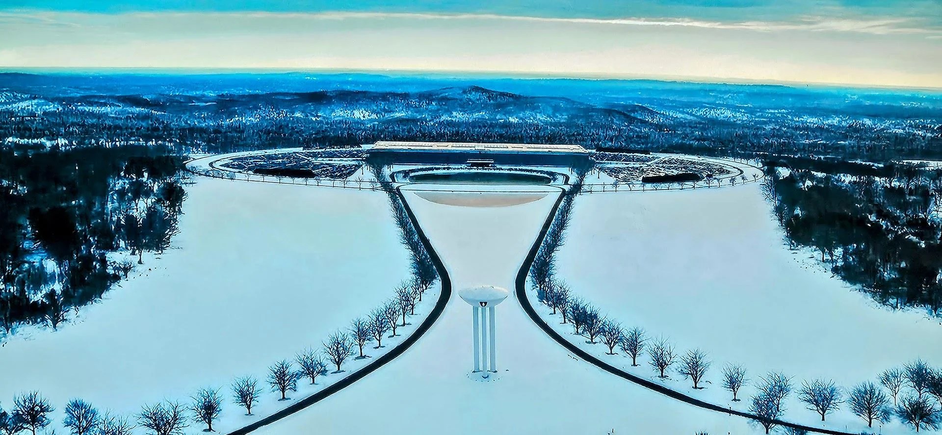 Las carreteras que rodean el complejo de Lumon Industries son tanto un “cerebro” —en tanto que es la forma a la que se asemejan— como un círculo infinito que parecen esconder que tengan principio, final o escape (como los espacios liminales, los backrooms o las vidas de los innies). Esta idea de “tiempo infinito” —a la vez que la de separación— aparece representada en este mismo escenario en algunos planos que enmarcan la construcción y las carreteras de manera que parecen formar un reloj de arena.