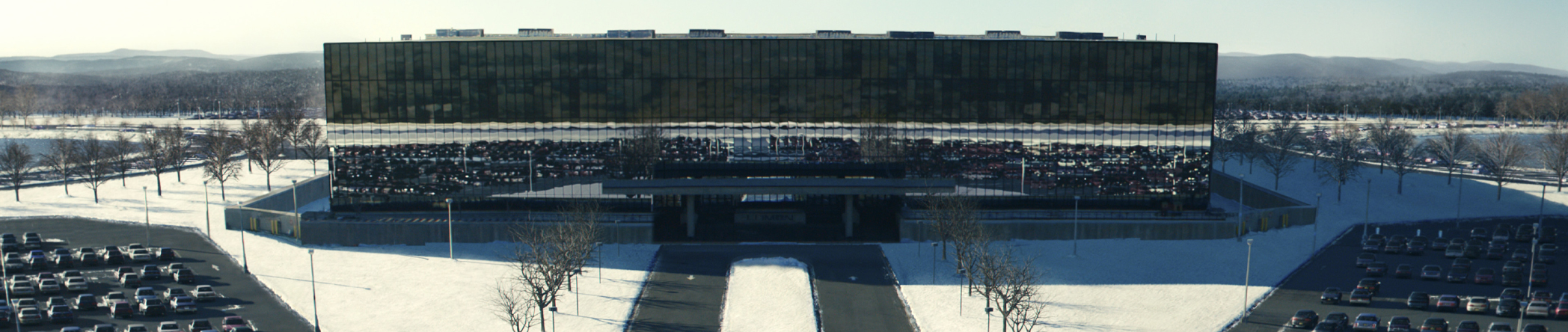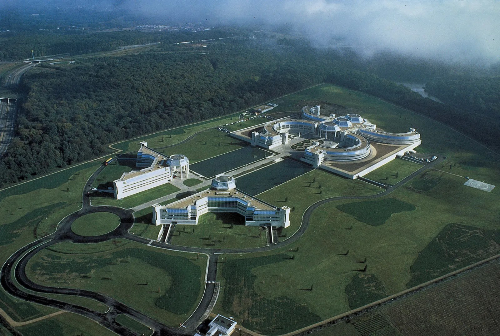 El edificio real es el complejo de oficinas Bell Works, en Holmdel (Nueva Jersey), el cual fue diseñado en 1958 por Eero Saarinen y que albergó en su interior la antigua sede de la compañía estadounidense de investigación y desarrollo científico Bell Labs hasta probablemente 2006 – 2007.
