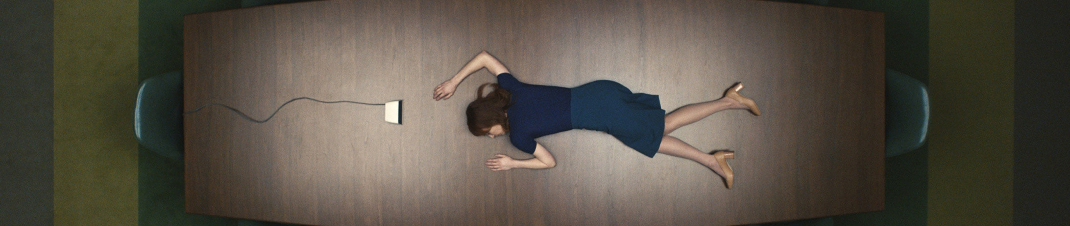 Este caso es, además de lo primero que experimentan los innies, lo primero que se muestra al espectador en la serie. Helly Riggs está tumbada sobre una larga mesa de madera cuando una voz la despierta preguntándole quién es. El plano cenital muestra, en primer lugar, tanto lo que es, en palabras de Jeremy Hindle, diseñador de producción de la serie, un útero constituido por esa mesa en la que los trabajadores de Lumon llegan a este nuevo mundo, como un ataúd de madera enterrado bajo tierra (en referencia a los pisos subterráneos donde se encuentra todo este parque de oficinas).