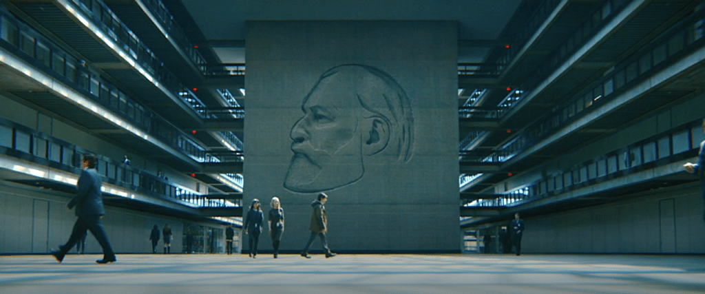 Al igual que en el resto de localizaciones dentro de Lumon, se produce un remiendo de capas temporales que mezclan elementos de distintas épocas, desubicando y desconectando la acción de su tiempo y dando lugar a un estilo retrofuturista en lo que Mark Fisher llamaría “la lenta cancelación del futuro” 14. En el neocapitalismo salvaje todo —la cultura— es reciclado: las franquicias populares son sobreexplotadas por enésima vez una y otra vez. La cultura del siglo XXI es la cultura del siglo XX pero en alta definición. Ya no existe lo retro debido a este reciclaje continuo de la cultura que ha perdido sus períodos de referencia eliminando los marcos culturales y temporales que habían existido hasta ahora. Las corrientes arquitectónicas por ejemplo, que se mencionaban en el inicio de este texto con sus características y particularidades propias, se han perdido en el siglo XXI, ya no existe un estilo propio y nuevo de la contemporaneidad sino un neo algo de lo que previamente existía. La cultura específica de un momento específico ha desaparecido pues todo es lo que ya hubo antes.