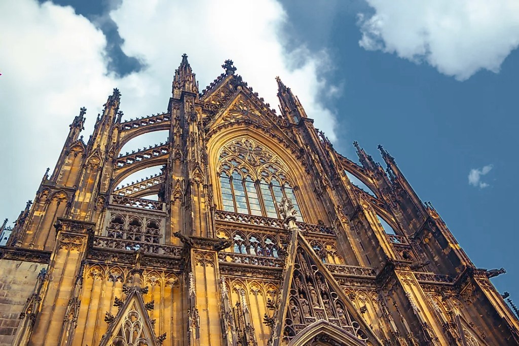 El ejemplo de las catedrales góticas supone una contraposición más con Lumon. Como se comentaba al inicio de este texto las grandes catedrales góticas construidas en Europa durante el medievo se elevaron en el centro de las ciudades para acercar a Dios a sus fieles envolviéndolos en la gloria divina mediante la luz, el color y la grandiosidad. Pero Kier Eagan no deja de ser un hombre, por tanto, este trabajo de glorificación es aún más laborioso porque debe convertir primero al hombre —Kier Eagan— en el Dios Kier. Para ello, al igual que se distancia a los trabajadores de Lumon entre sí tanto de manera horizontal como jerárquica, es necesario producir esta separación de manera vertical: Eagan está arriba y sus trabajadores abajo, y si Eagan no puede estar en los cielos —por no ser un dios real— entonces la distancia con sus trabajadores se acentúa enterrando a estos metros y metros bajo tierra en su lugar de trabajo, convirtiendo Lumon Industries casi en su propia catedral de formas geométricas y ordenadas, y regida por el rostro gigantesco de Kier en un muro nada más entrar y por unos colores y códigos de vestimenta estrictos que refuerzan el lugar de cada individuo en este credo: