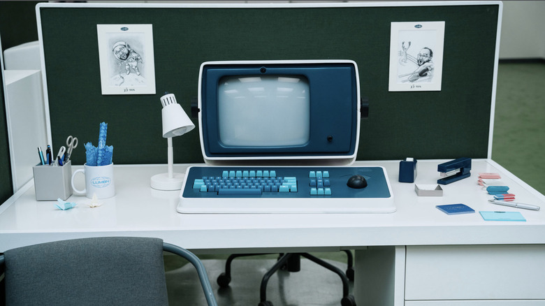 En Severance, esta mezcla de tiempos ocurre con un lugar de trabajo que es a la vez una oficina de planta abierta como las de Google y cubículos como los imaginados por Jacques Tati en Playtime en 1967, los ordenadores parecen sacados de los años 80 pero tienen elementos más modernos como TrackPads —y a los que les falta la tecla escape—, y la moda recuerda a la de los años 70 a la vez que choca con elementos modernos e incluso futuristas como el chip de Lumon que cada empleado lleva insertado en su cerebro. Frente a estos contrastes el espectador y los personajes son desconectados de la realidad de su tiempo, impulsados constantemente a la tristeza de la nostalgia por un futuro perdido dentro de las oficinas de Lumon.
