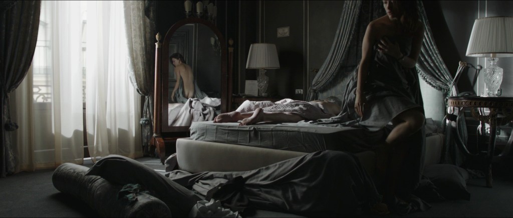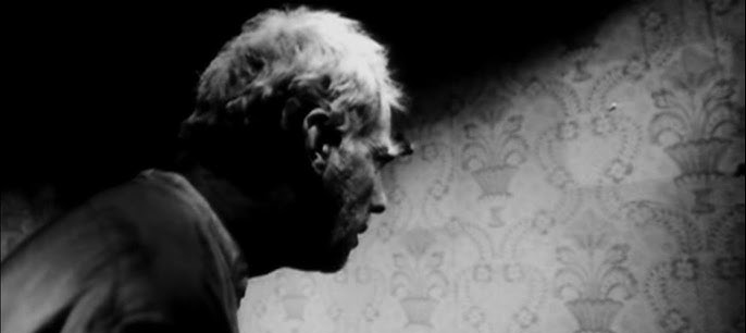 ⦁ El pasado ontologizado: Primero existe el duelo por algo muerto, por unos despojos del pasado que el espectro devuelve ontologizando sus restos. Existe un enterramiento que más adelante se nos concretará. Se trata del pasado como resto en el presente. «The best’s to come… You were right for once… In the end» dice, pero en un final que no pertenece al futuro porque ya se ha convertido en pasado, que no conforma una promesa esperada porque aparentemente ya ha sido cumplida y en su cumplimiento ha inmovilizado el presente y ensanchado el pasado. El retorno tiene que ver con el enterramiento, con un asesinato mental con el que Joe fantaseó: matar el origen identificado con el padre y la madre, «that’s where you think this is coming from, don’t you?… That’s where you heard your father…». La voz espectral hace referencia a sí misma en plural, son varios espectros en una sola voz cuya aparición es ingobernable: «What it’d be if you ran out of us…. Not another soul to still….». No sabemos si la narración brota de la mente de Joe como síntoma de unos recuerdos compulsivamente rememorados (el recuerdo de unas almas, soul) o si detrás de la cámara se presenta una aparición inaccesible para el espectador (los restos ontologizados del espectro). Esta confusión se sostiene mediante dos lenguajes, el narrativo y el cinematográfico. Formalmente, la espectralidad se manifiesta en lo que no se dice y en lo que no se ve. De igual forma que los puntos suspensivos mantienen una tensión narrativa que pospone continuamente la confesión de una injusticia pasada, la elección de los planos aísla a Joe al mismo tiempo que arrincona la mirada del espectador. La narración no se desarrolla en el espacio visible, en el plano, sino en el invisible que se prolonga; es decir, en el fuera de campo. A medida que la voz especifica acerca de lo ocurrido, el plano se acerca cada vez más al rostro de Joe y aumenta la tentación del desvelamiento al mismo tiempo que las dudas acerca de la ambigua procedencia de la voz. ¿Se trata de una voz delirante dentro de la mente de Joe o de una verdadera aparición espectral externa a él? El alma se confronta con lo fantasmal en un insistente movimiento del interior al exterior del almacenaje de recuerdos de Joe. Pero entonces, en el penúltimo movimiento de cámara, la enunciación: «Just the announcement in the Independent…. “On Mary’s beads we plead her needs and in the Holy Mass”…. Will I tell you?… Not interested?», el relato de un suicidio tras tres intentos fallidos permite reconocer a la voz como el antiguo amor fallecido de Joe. El recuerdo compulsivo de la muerte de su amada conjura su aparición en su intento por ontologizar los restos de algo que ha llegado a su fin. Joe es asediado por un pasado que no deja de señalar su culpabilidad.