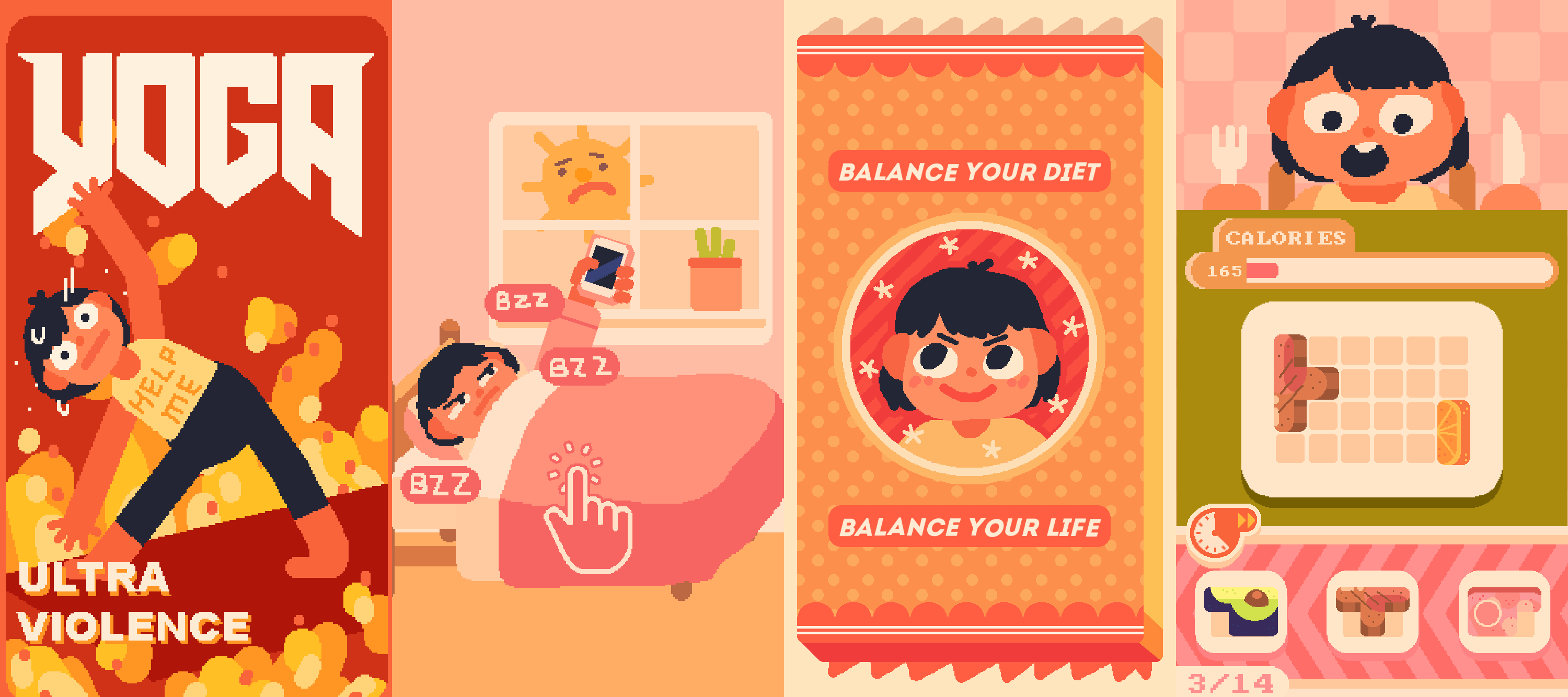 La idea de que «todo es comida» se literaliza posteriormente a través de dos secuencias de diálogo. En la primera, Jenny cena en casa de la familia de su novio y es interrogada por la madre de este mientras que, en la segunda, la protagonista conversa con uno de sus productores a raíz del retraso del juego. En lugar de hacernos escoger directamente entre tres frases concretas, el juego nos obliga a servir algún tipo de comida a la protagonista. Así, el sushi significa mentir sobre si hemos hecho los deberes durante las vacaciones mientras que elegir una tortita nos lleva a confesarle al productor que aún no tenemos una demo para el juego. La complicada relación que Jenny tiene con la comida se extiende a todos los ámbitos de su vida y, por tanto, la báscula no nos devuelve un número concreto sino ideas absolutas sobre el éxito y el fracaso. No importa si hemos comido de forma adecuada toda la semana si luego fallamos a la hora de ahorrar en un billete de tren. Da igual si lo pasamos bien en la cita si luego no tenemos tiempo suficiente para hacer las tareas de casa. Todo es comida, el perfeccionismo funciona en absolutos y solo hay espacio para el éxito o la pantalla de Game Over final.